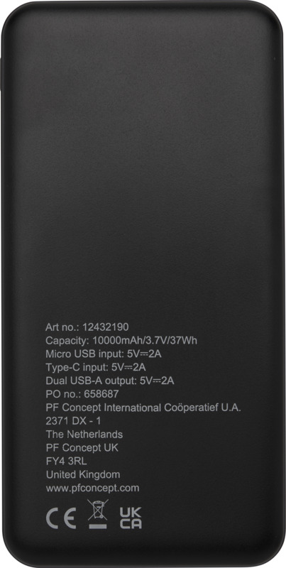 The Loop 10.000 mAh recycled plastic promotional power bank offers a practical way to keep devices charged while promoting your brand sustainably.
