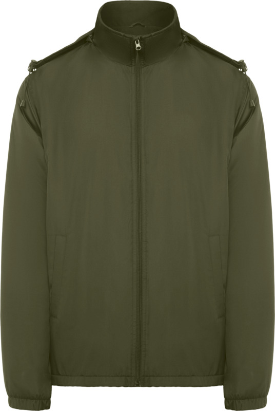 - It features a high collar and a foldable hood with adjusters for adaptable protection.