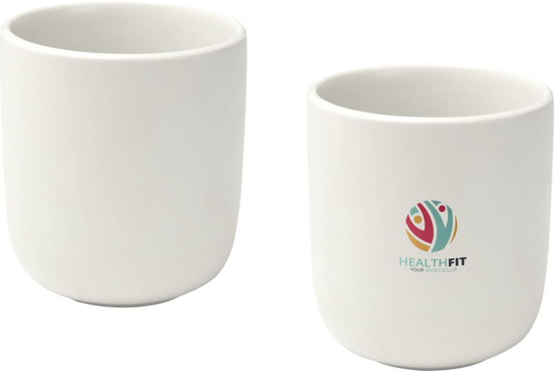 Offer a practical gift for clients or staff with this Male 200 ml ceramic cup set. It includes two cups, each with a smooth matt finish and a 200 ml capacity. This useful set provides a good surface for your branding needs.