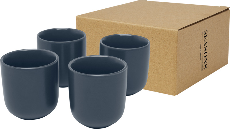 This 4-piece ceramic espresso cup set provides a practical, stylish promotional gift. Each 90 ml cup features a modern Nordic design for serving single espressos. It is ideal for showcasing your company logo.