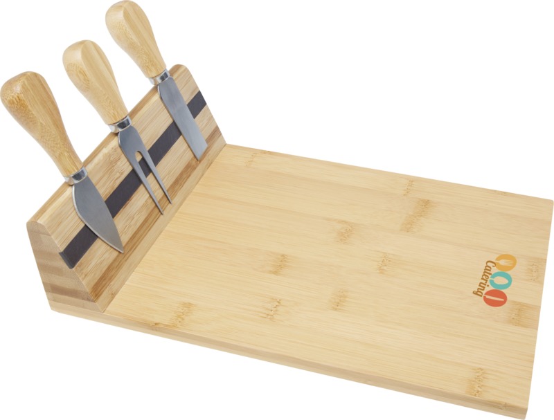 This general promotional cheese board set is a practical and memorable item for branding.