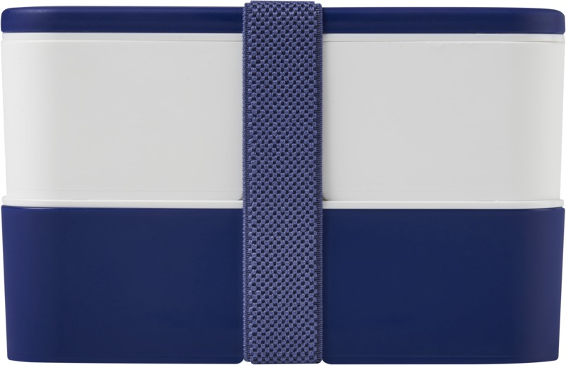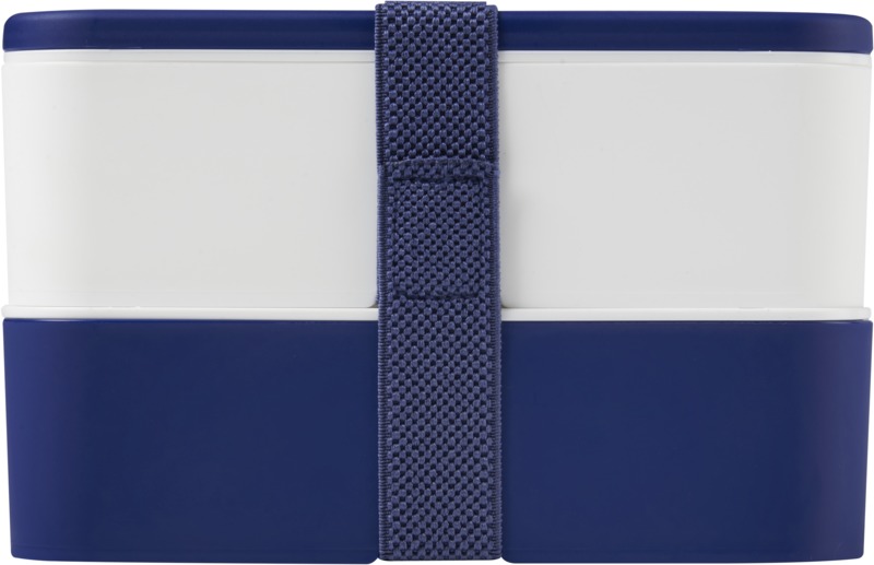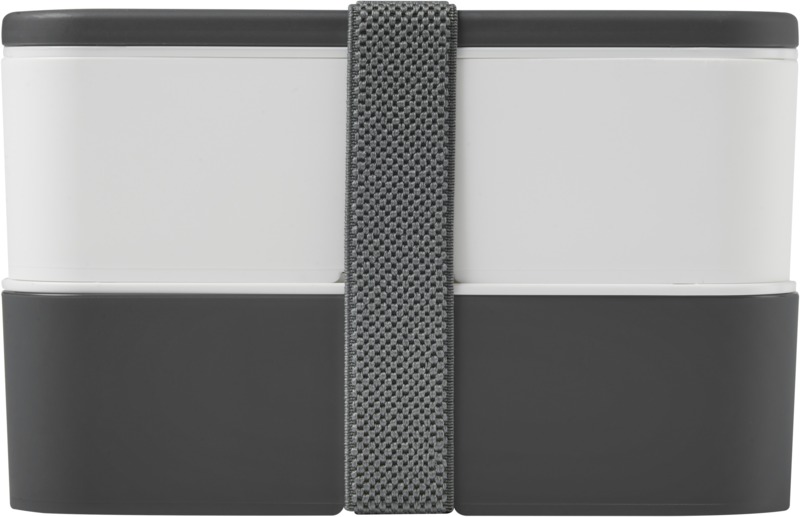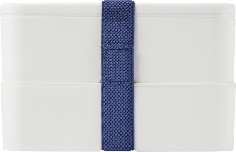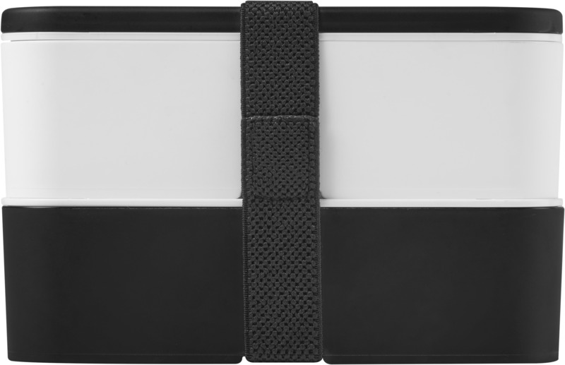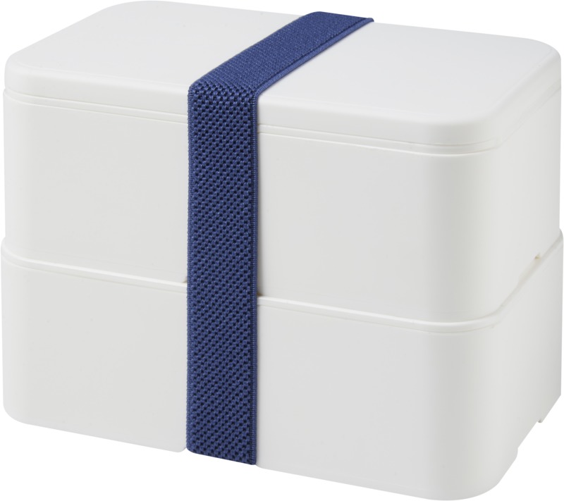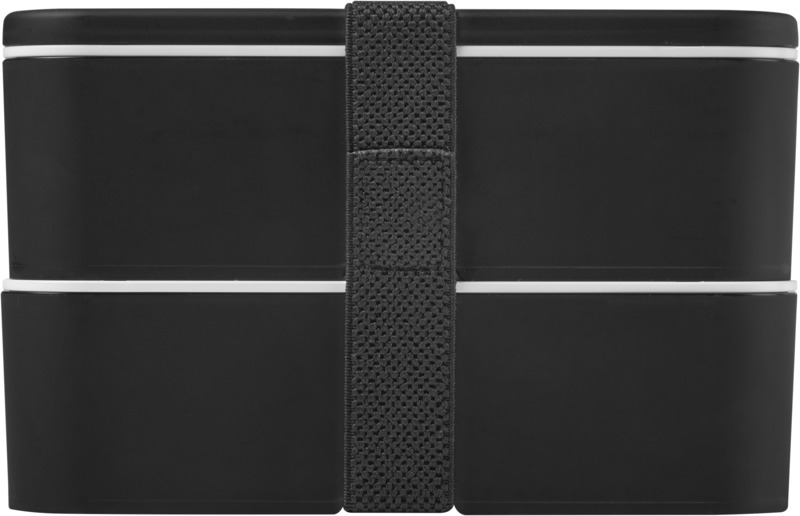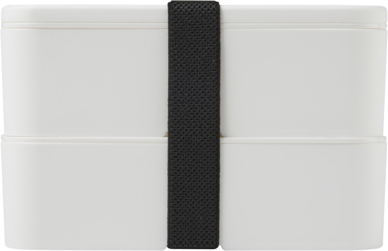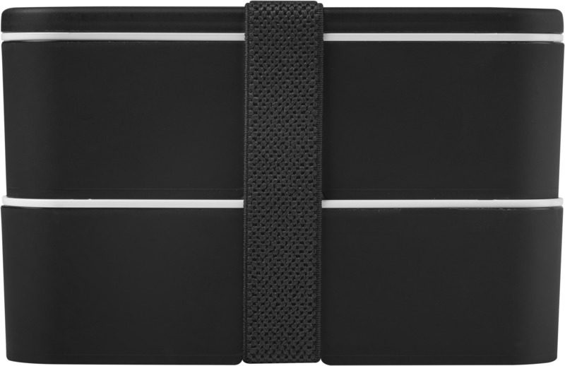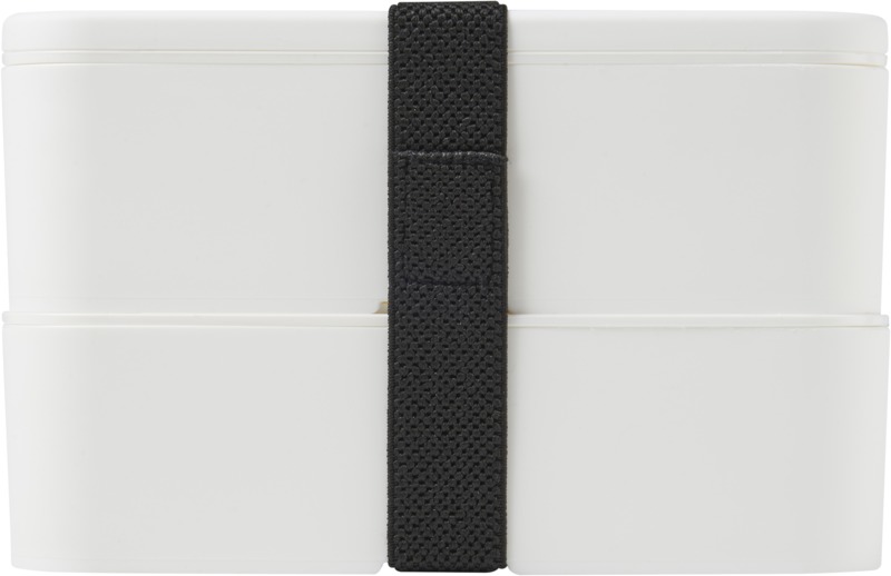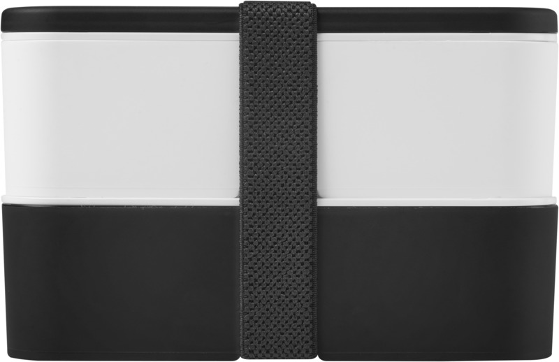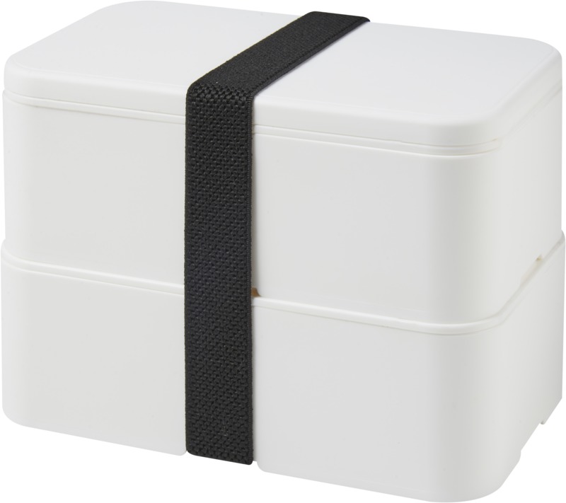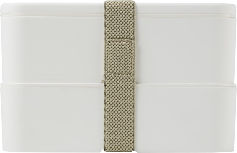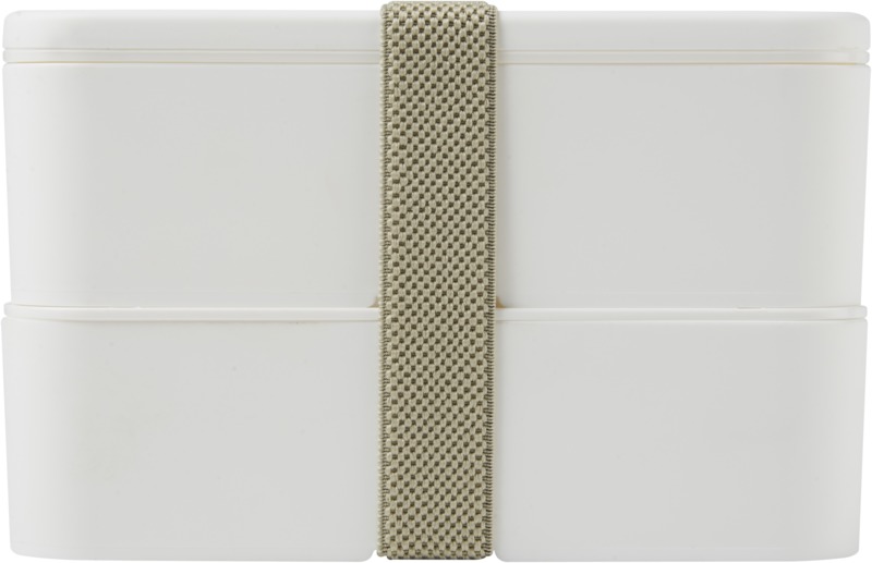 This practical, sustainable MIYO double layer lunch box offers ample space for meals. It features two 700 ml compartments and a recycled PET securing band, keeping contents safe. It is microwave safe, dishwasher safe, and fully recyclable, suitable for promotional campaigns.