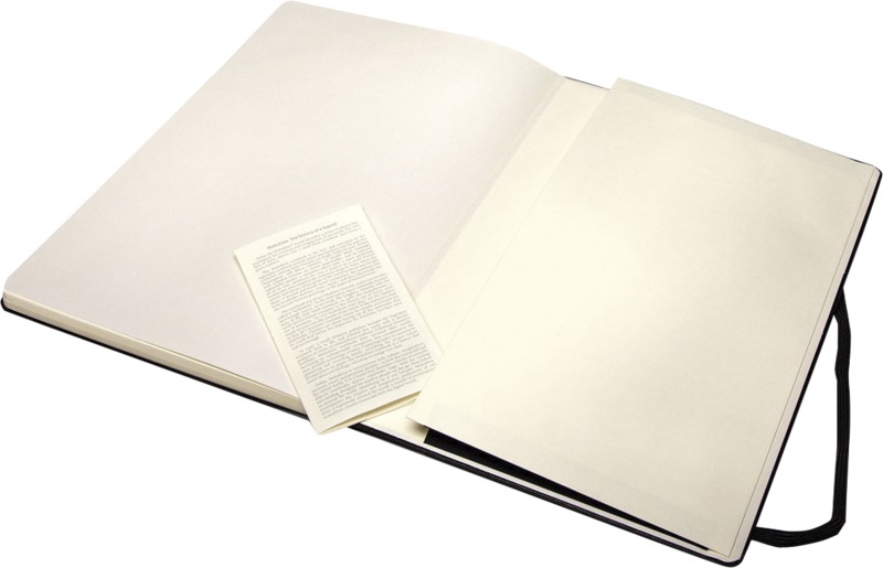 - An expandable inner pocket holds the Moleskine brand history and can store small notes.