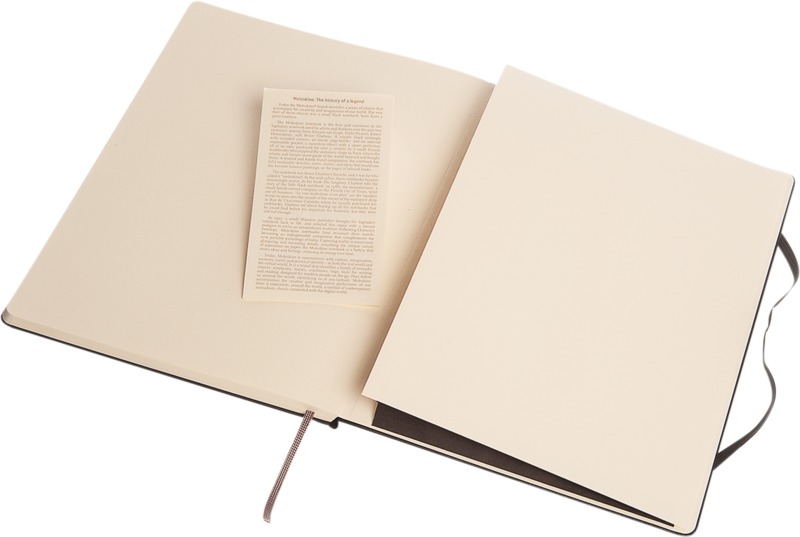 This Moleskine Classic XL hard cover notebook makes a high-quality branded gift. It features a durable hard cover, rounded corners, an elastic closure, and 192 ruled ivory pages. An expandable pocket holds loose notes. It is a distinguished Moleskine choice.