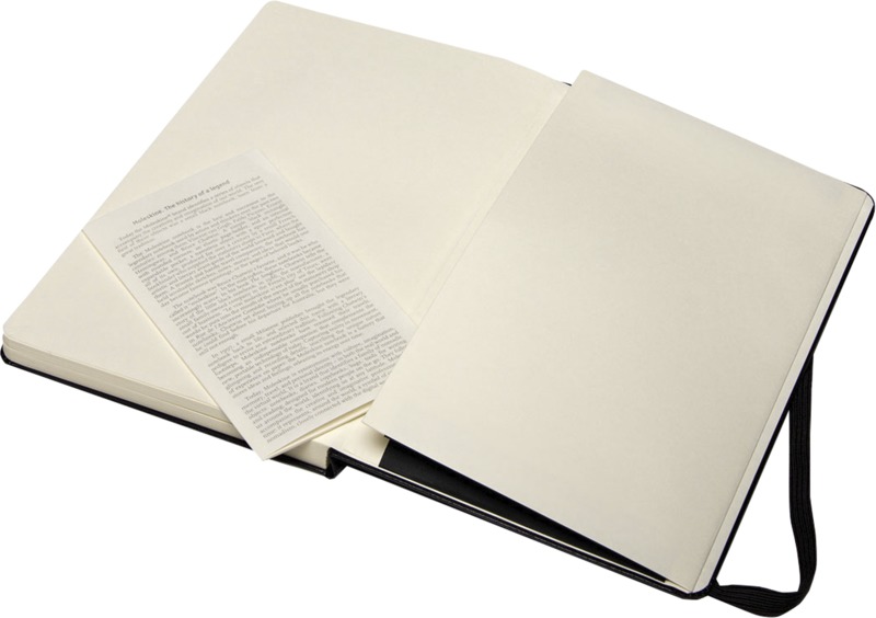 - An expandable inner pocket holds the Moleskine brand history.
