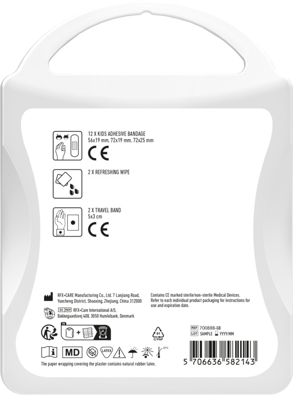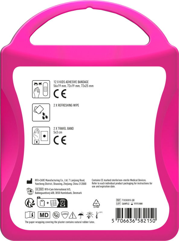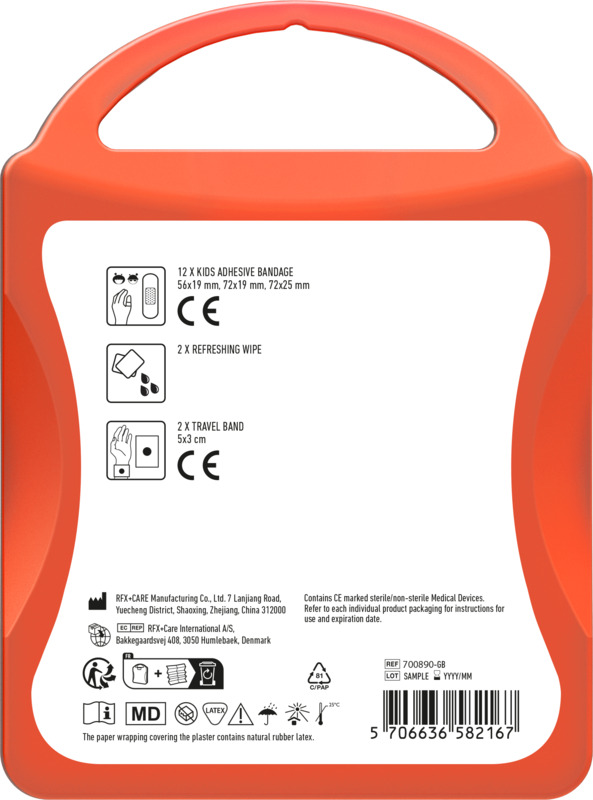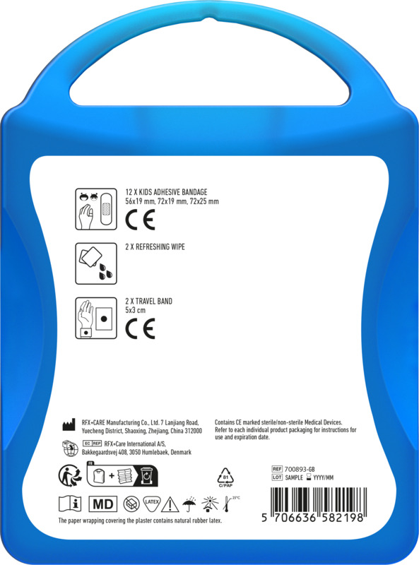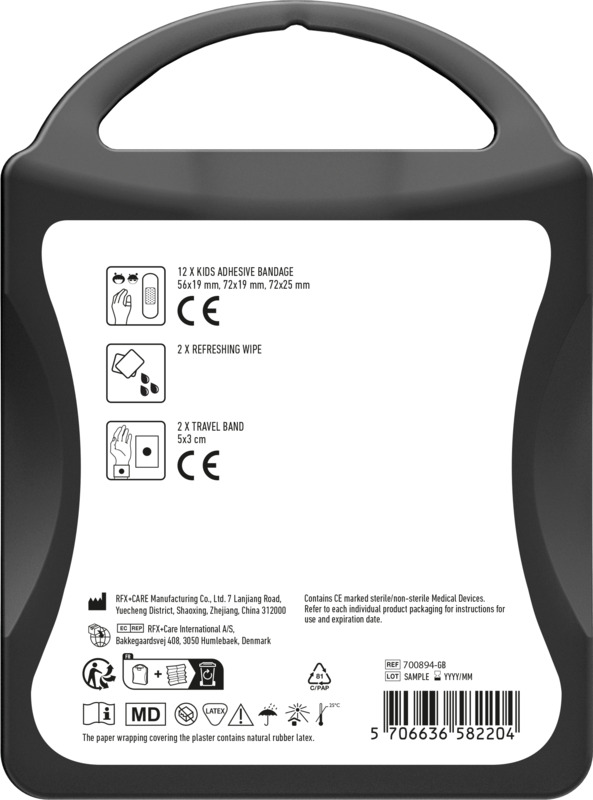 • This compact kit provides basic wound care with 12 kids plasters.