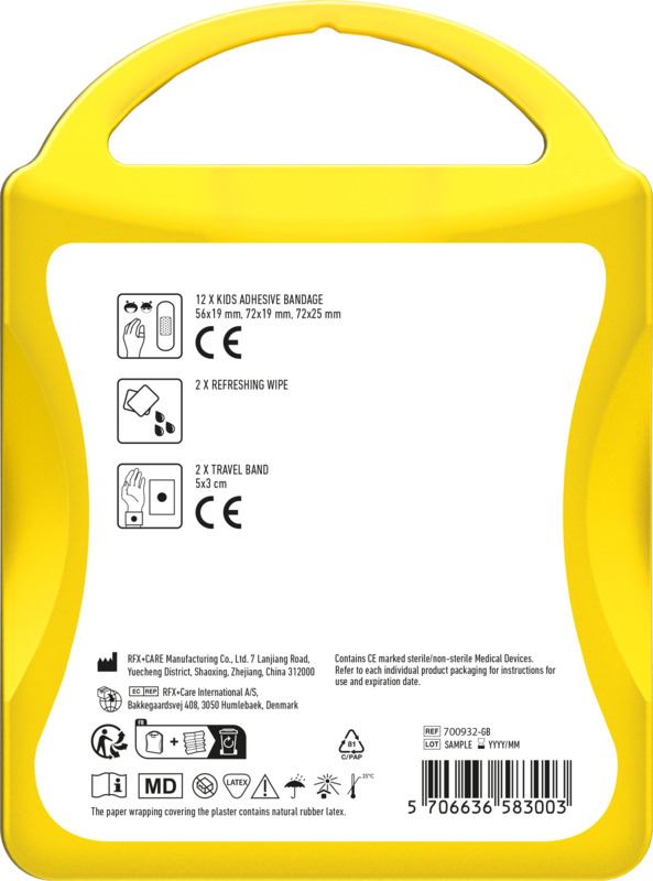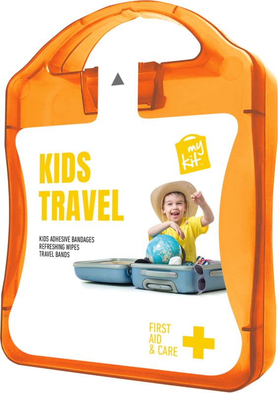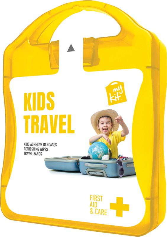 Help travelling families with the MyKit Kids Travel Set. This compact kit has 12 kids plasters for minor cuts, two refreshing wipes, and two travel bands to reduce travel sickness. All items meet EU regulations. Offer this useful set as a thoughtful promotional gift from your business.