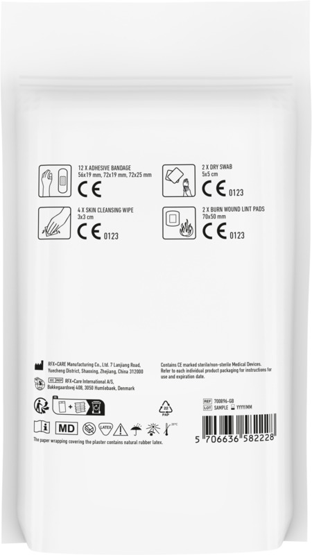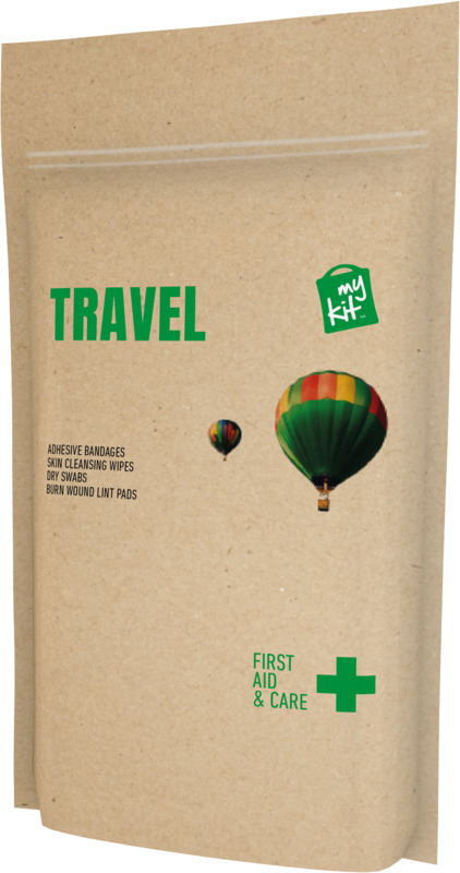This MyKit Travel First Aid Kit gives peace of mind for minor injuries while travelling. It contains plasters, swabs, and burn pads in a convenient paper pouch. All items meet EU safety standards, making it ideal for promotional campaigns.