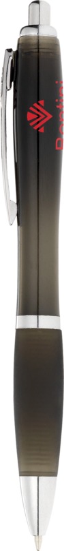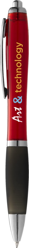 This Nash ballpoint pen is practical for promotional campaigns and corporate giveaways. It features a coloured plastic barrel, a click action mechanism, and a soft black grip for comfortable writing with black ink. This pen offers a good surface for branding your company’s logo.
