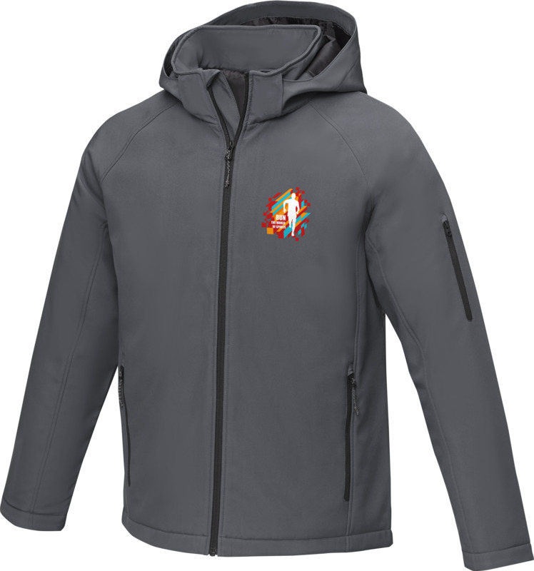 Stay warm and comfortable in the Notus men’s padded softshell jacket. It features 250 g/m² polyester mechanical stretch fabric with a taffeta lining for warmth. A detachable hood and tearaway label add wearer comfort, making it suitable for branding and promotional wear.