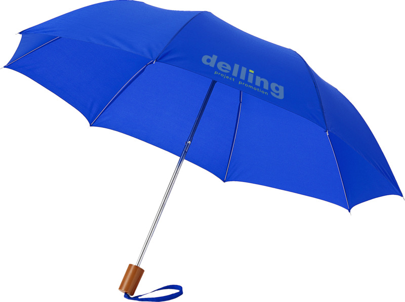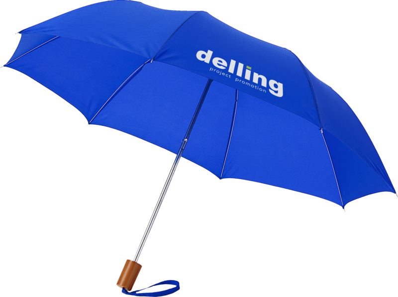 Stay dry with this Oho 20″ foldable umbrella. It features a durable polyester canopy and metal frame for reliable protection. The umbrella folds into a protective pouch, fitting easily into bags, making it a useful item for brand promotions.