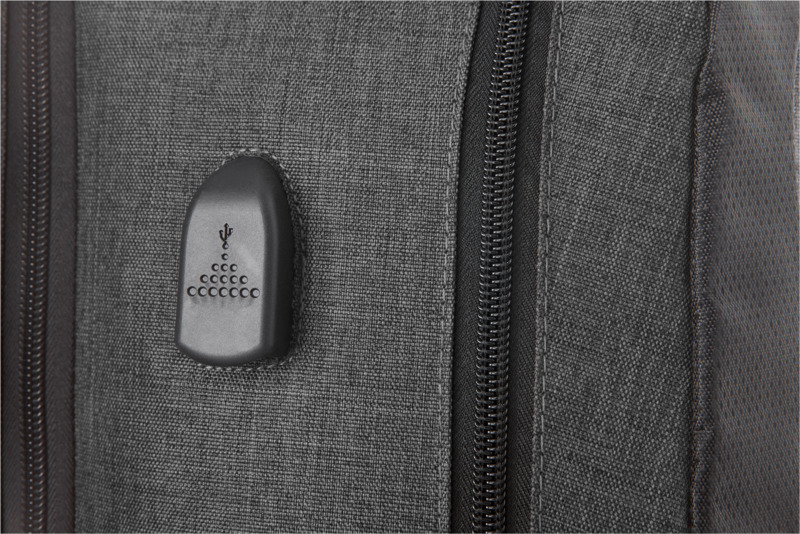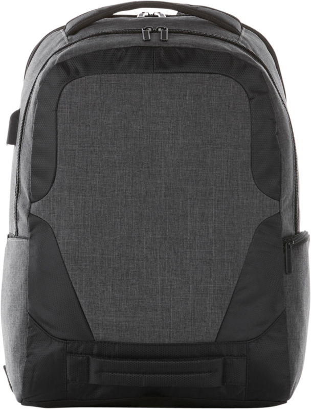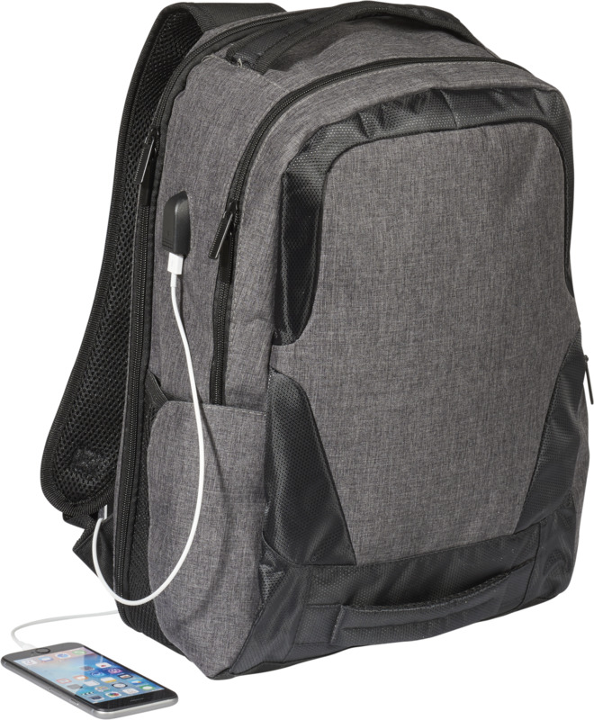 • Designed to fit a 17-inch laptop, this backpack includes a USB port and cable for convenient device charging.