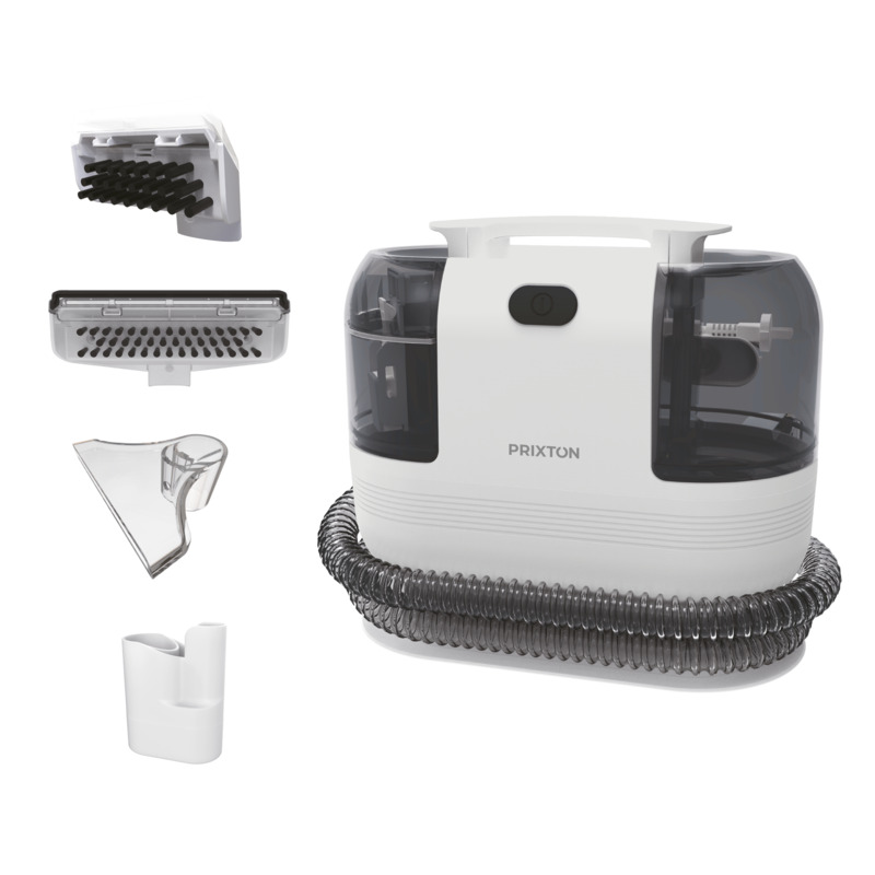 Achieve clean carpets with this versatile unit. It sprays, cleans, and vacuums both liquids and solids, powered by a 500W motor. Separate tanks for clean and dirty water make for thorough cleaning results from the Prixton AquaClean.