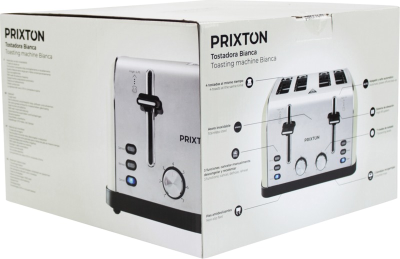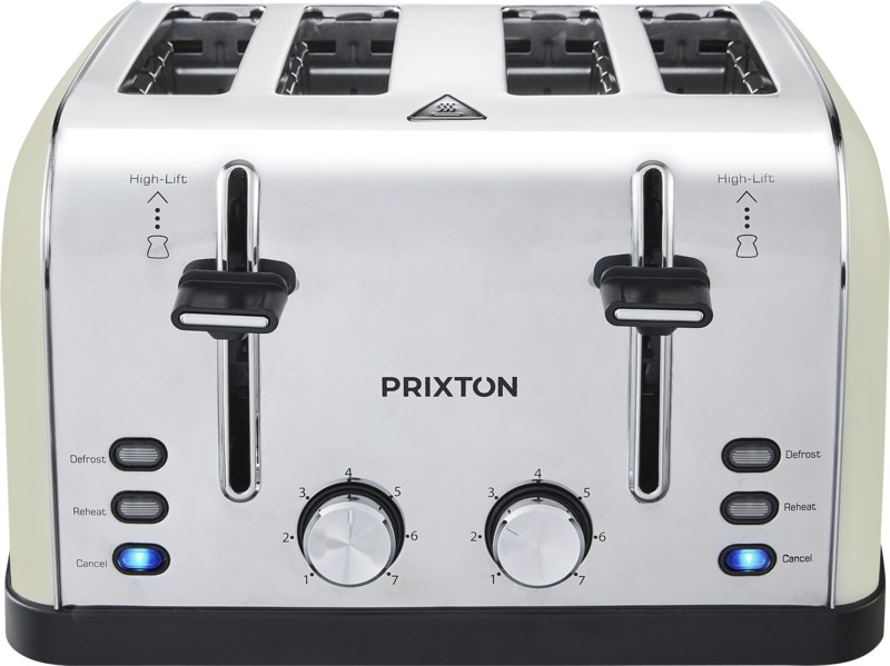 The Prixton Bianca toaster quickly makes toast for multiple people. It features four extra-large slots and seven browning levels for varied preferences. This Prixton appliance provides practical daily use.