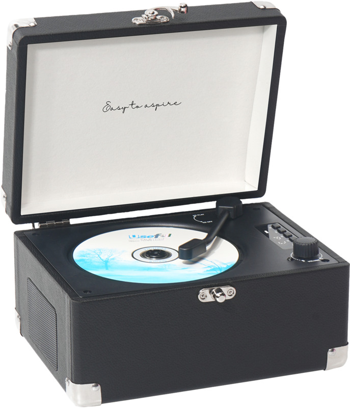 - Its design, styled like a record player, adds a vintage aesthetic.
