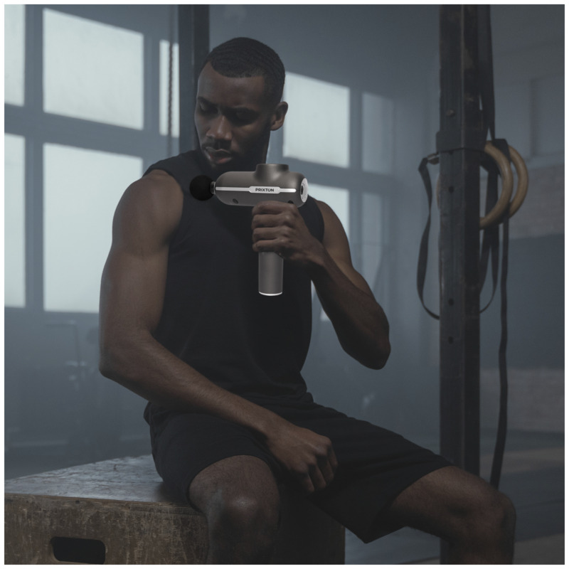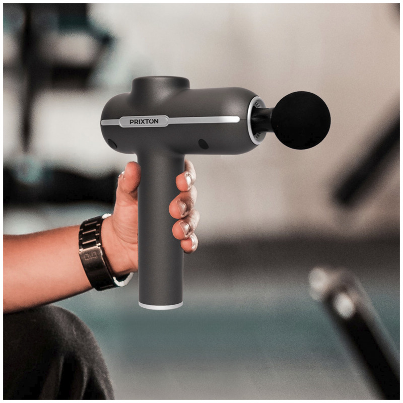 This wireless massage gun helps with warm-ups, recovery, and pain relief after exercise. It offers five speed settings and four massage heads for varied body parts. The Prixton MGF80 Synergy provides effective muscle comfort.