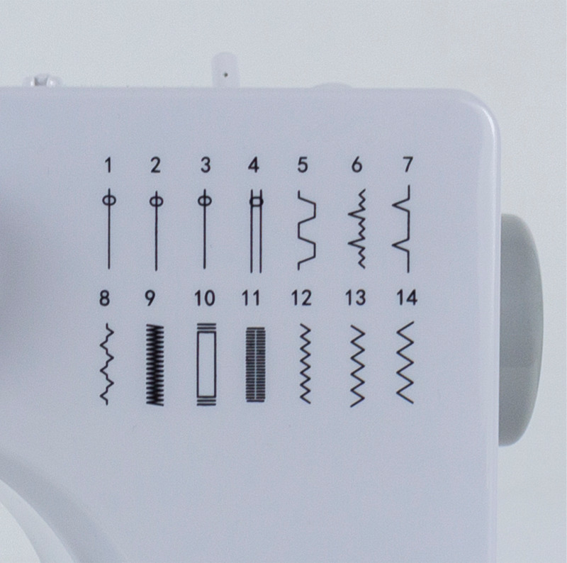 - It provides 14 stitch patterns, each with adjustable width and length, allowing for varied sewing tasks.