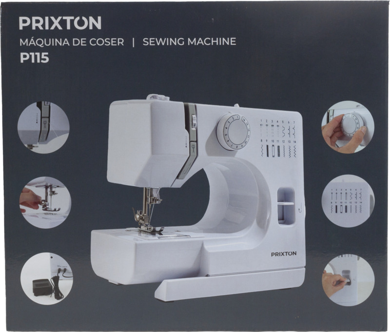 The Prixton P115 sewing machine is a practical tool for home and craft projects. It provides 14 stitch patterns with adjustable width and length for varied sewing tasks. This machine also includes a stretchy zigzag stitch. A useful Prixton item for your creative needs.