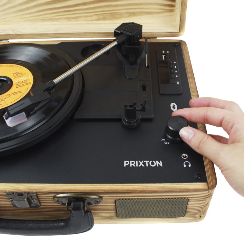 Enjoy classic vinyl and digital music with the Prixton VC400 player. It plays records at 33.3, 45, and 78 RPM, and also functions as an MP3 player with Bluetooth and USB. This Prixton device provides diverse audio options.