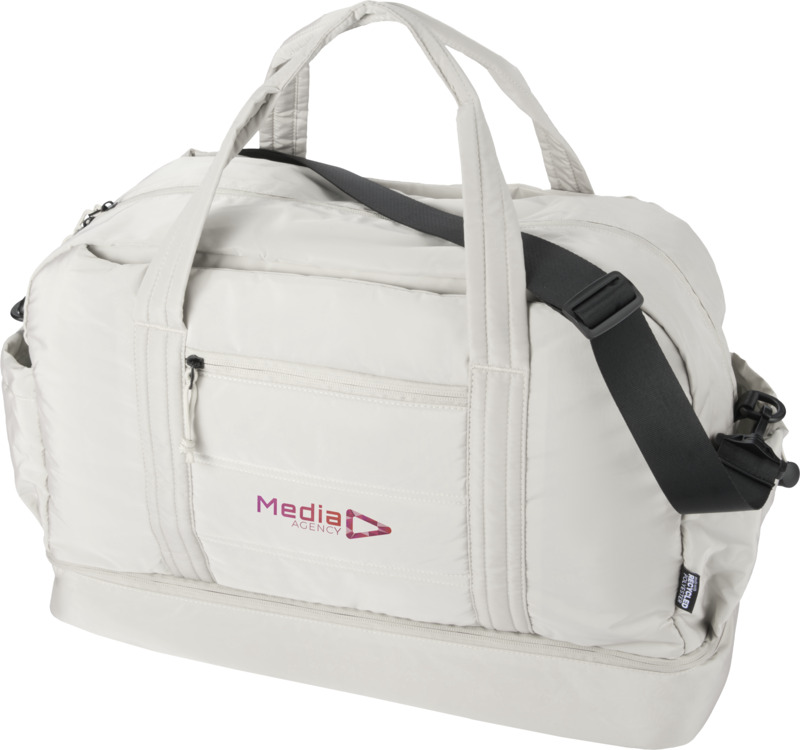 This Puffer GRS duffel bag offers practical 30L storage for short trips or gym visits. Made from GRS certified recycled materials, it includes an insulated PEVA-lined bottom compartment. It is ideal for general promotional activities.