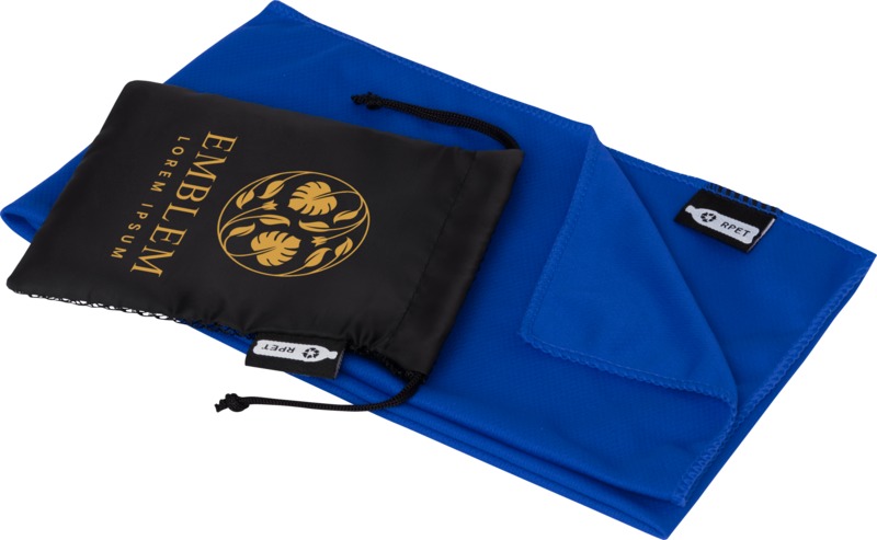 Stay cool with the Raquel cooling towel, made from recycled PET. This 80×30 cm towel quickly absorbs moisture and dries fast. It is washable and comes with a matching recycled PET pouch. A practical item for promotional campaigns.