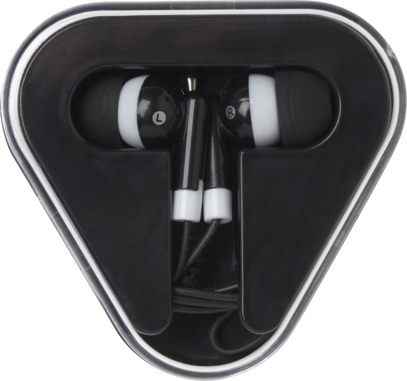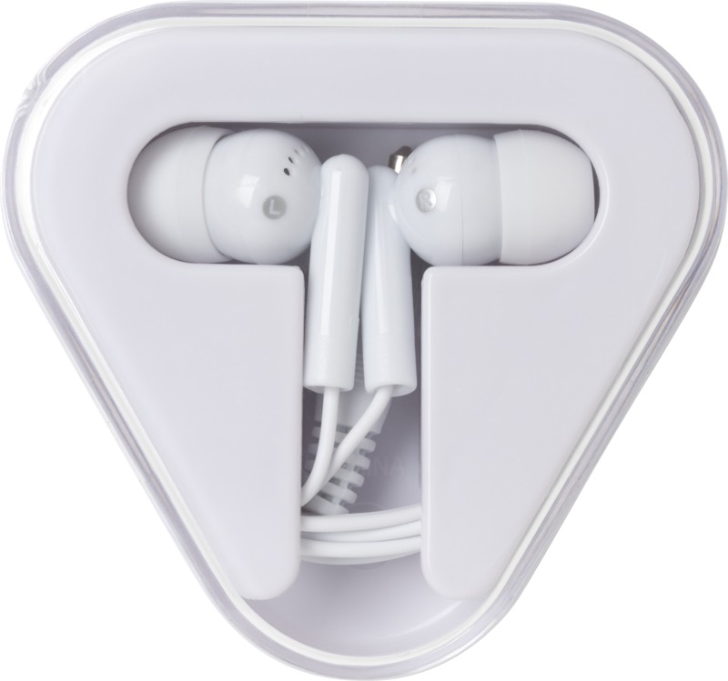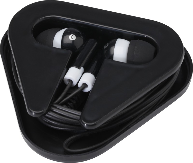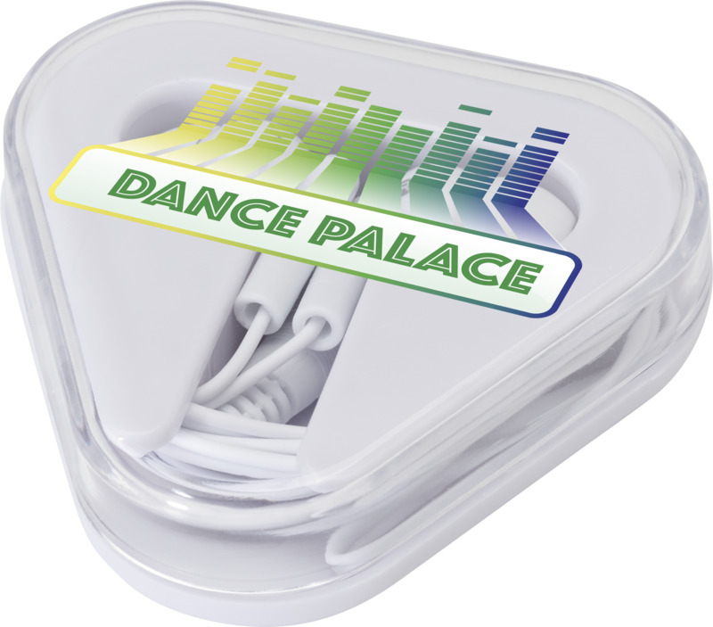 Offer a practical branding opportunity with Rebel earbuds. They connect to standard 3.5 mm audio jacks and come in a recycled plastic triangular case. This case protects the earbuds and stores the cable, making them ideal for promotional giveaways.