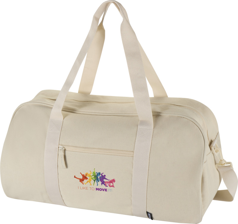 The Recanvas GRS recycled duffel bag 40L is a practical choice for general promotional efforts, offering a useful item for clients and staff. It provides an eco-conscious way to present your brand.