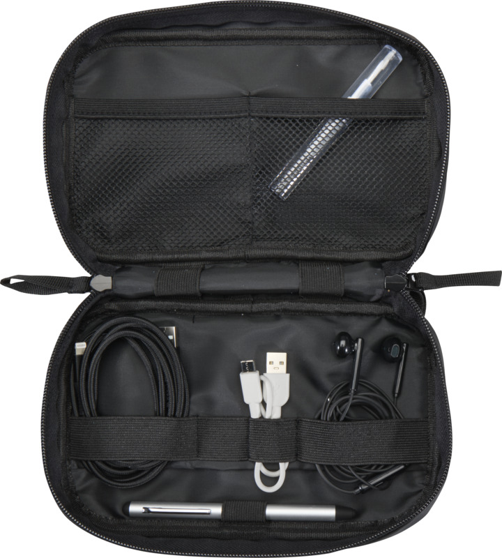 This tech pouch provides useful storage for gadgets, making it an excellent item for general promotional branding.