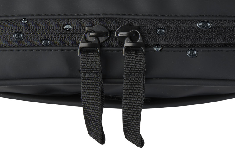 - The main zipped compartment includes an elastic pen loop, two mesh pockets for earbuds, a reinforced divider, and multiple elastic loops to secure cables, USB drives, and chargers.