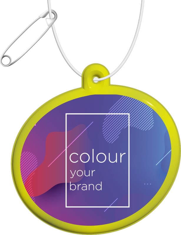 Increase visibility and safety with the RFX™ H-09 oval reflective hanger. It is made from phthalate-free PVC and meets EN 17353 Type B 1 traffic safety standards. Easily attach it with the included 10 cm string and safety needle. This item reflects well on your brand.