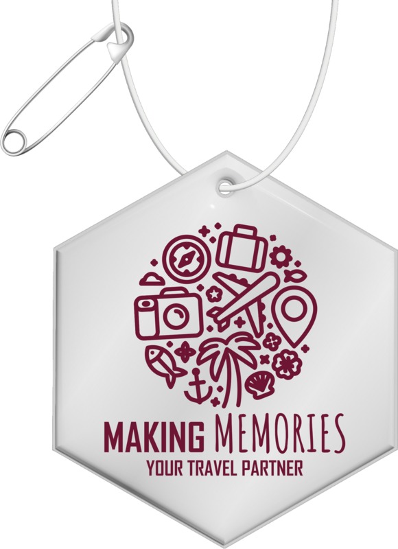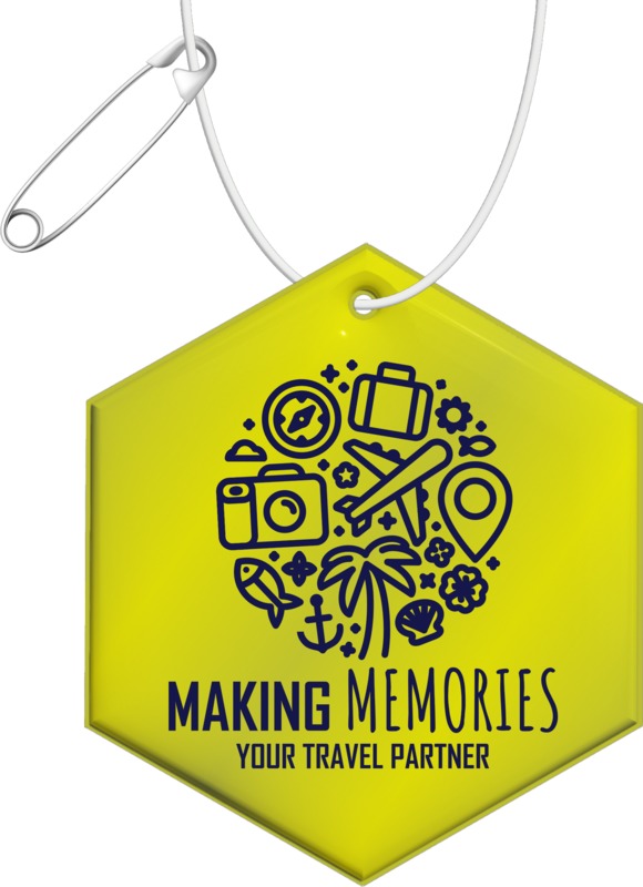 This RFX™ H-12 hexagon reflective hanger is a practical item for general promotional campaigns, helping to increase visibility and safety for recipients. It allows businesses to feature traffic safety as part of their brand message.