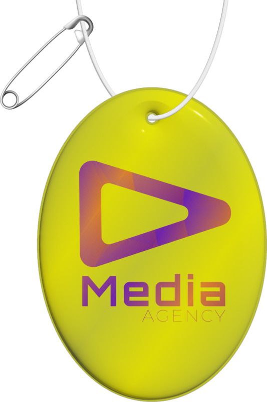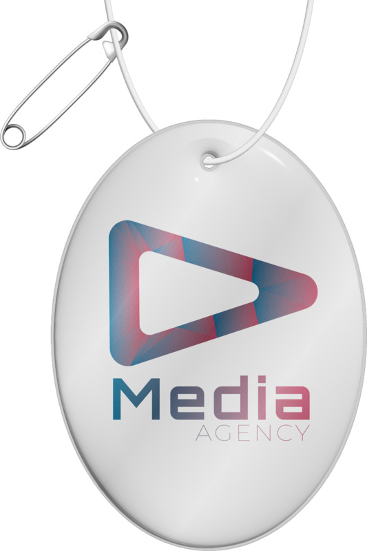 The RFX™ H-16 oval reflective PVC hanger increases brand visibility and promotes safety. Made from phthalate-free RFX™ reflective PVC, it is CE approved for traffic safety. This hanger includes a string and safety needle, allowing simple attachment for general promotional efforts.