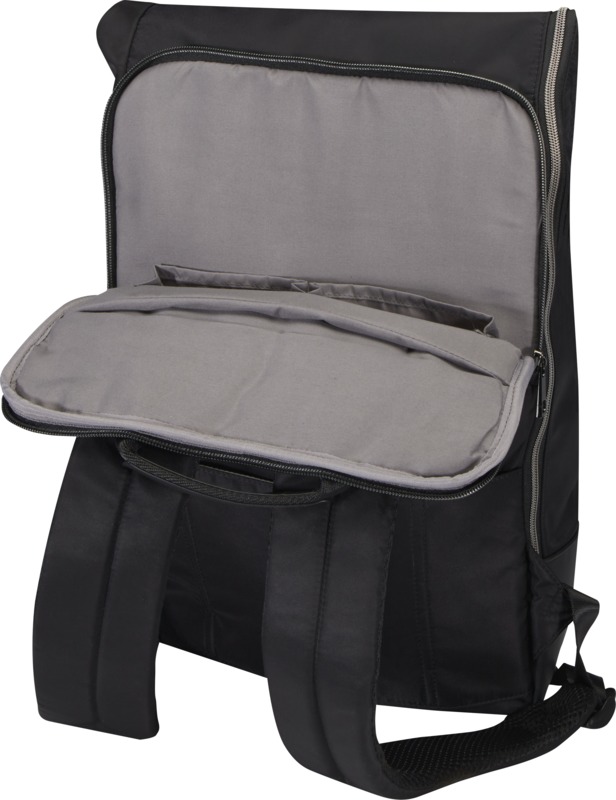 This Rhine 18L rolltop backpack helps you move easily between work and personal activities. It features GRS recycled nylon construction and a dedicated 15-inch laptop compartment. This makes it practical for various promotional campaigns.