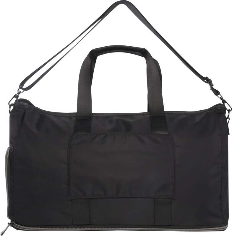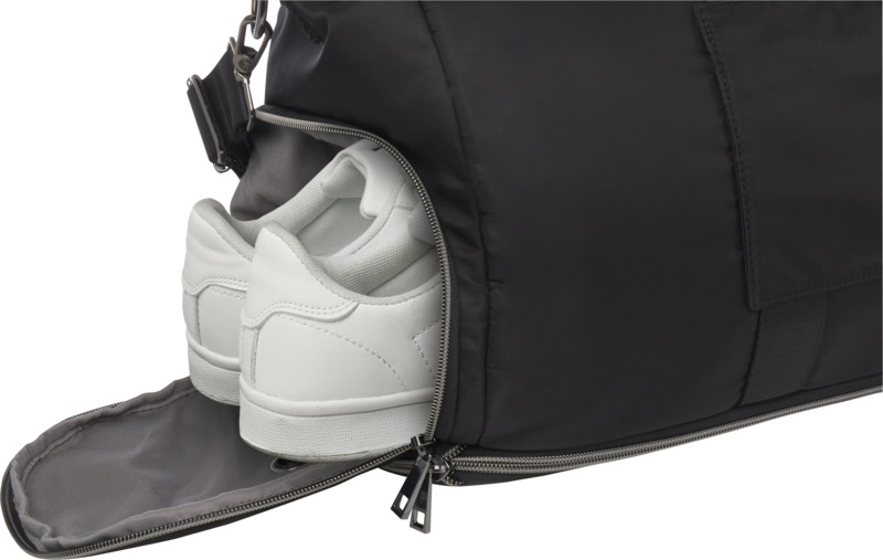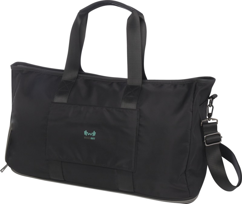 The Rhine recycled expandable duffel bag provides practical versatility for travel or sports. It expands from 35 litres to 42 litres and is made from recycled nylon, including a leak-proof pocket and shoe compartment. This makes it a useful item for your brand.
