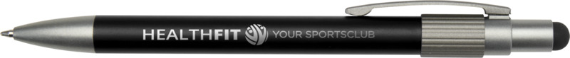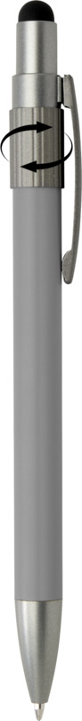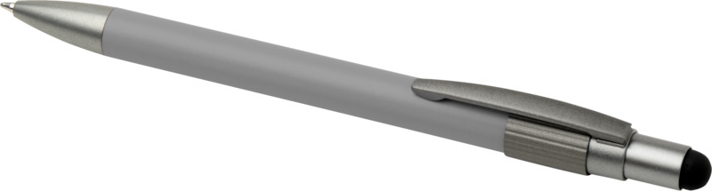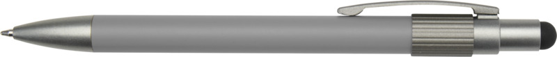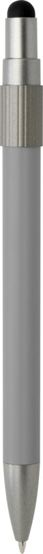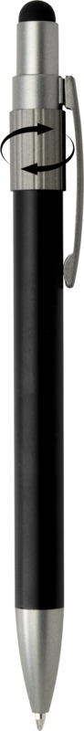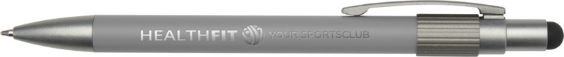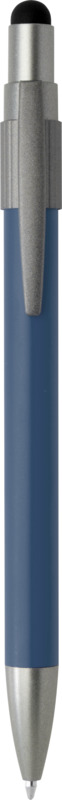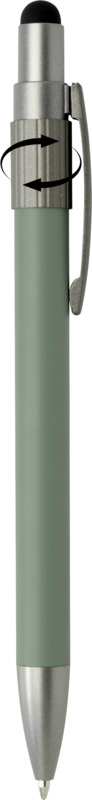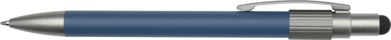 This Rill RCS recycled pen provides a practical writing tool. It features a blue ink ballpoint, a touchscreen stylus, and a fidget spinner. Made from RCS certified recycled aluminium, it is a versatile item for daily use or promotions from Rill.