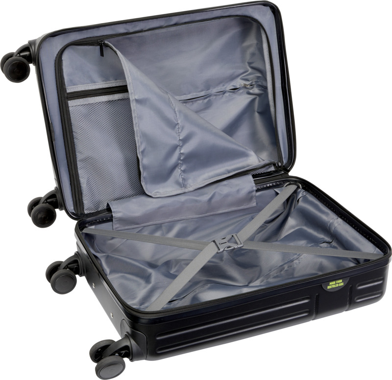 Travel responsibly with the Rover 20″ GRS recycled cabin trolley. Made from impact-resistant recycled plastic, this 40L trolley offers smooth movement with 360-degree spinner wheels. An integrated TSA lock keeps belongings secure. It serves as a practical, eco-friendly promotional item for your brand.