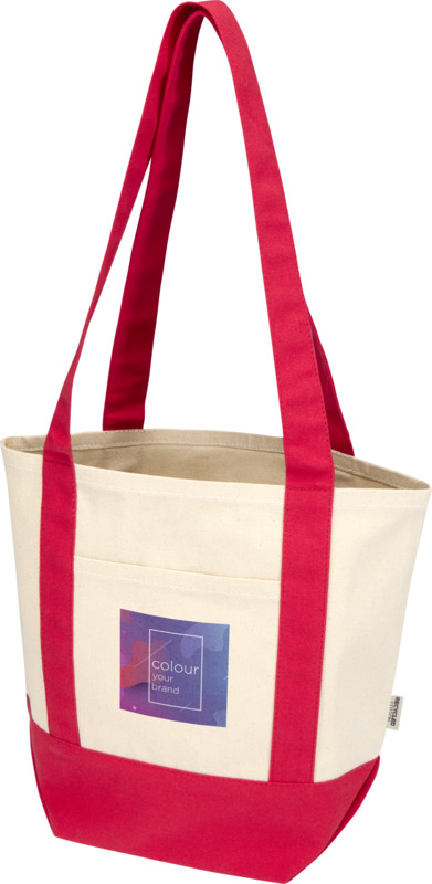 This recycled mini cotton tote bag is an excellent general promotional item for displaying your brand's commitment to quality and sustainability.