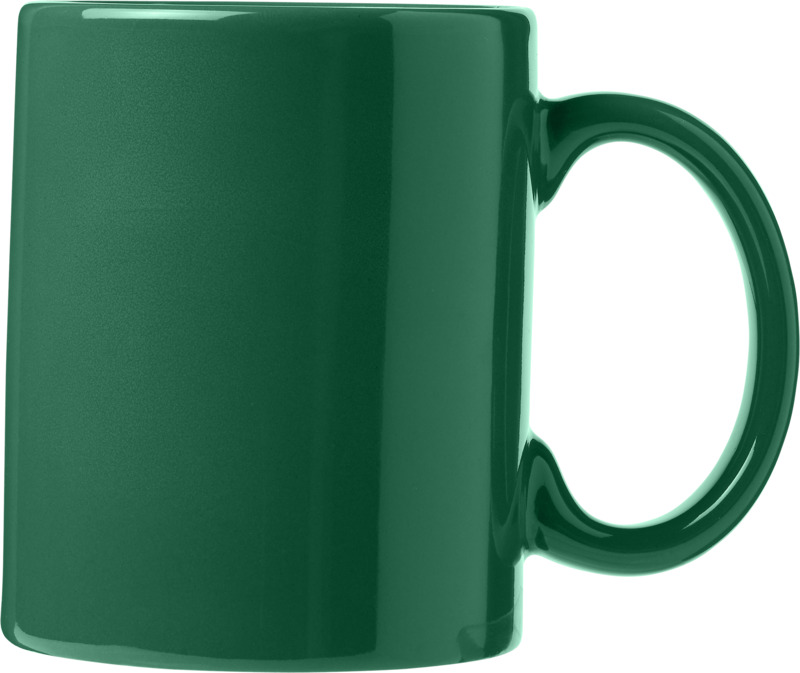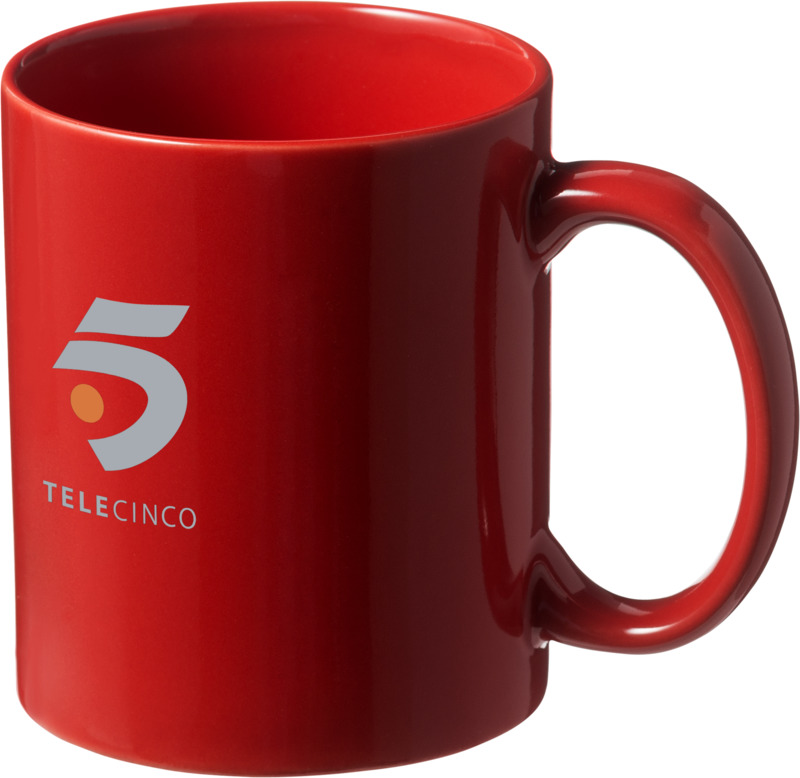 This Santos 330 ml ceramic mug is a practical item for general promotional campaigns, offering daily visibility for your brand. Its classic design makes it suitable for any home or office setting.