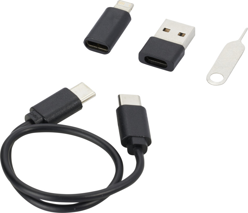 - A modular data transfer and charging cable made from recycled plastic, delivered in a storage box that also works as a phone stand.
