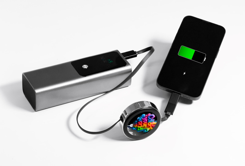 This cable is a functional product for general promotional campaigns, allowing custom branding with a luminous LED or offset printed logo.