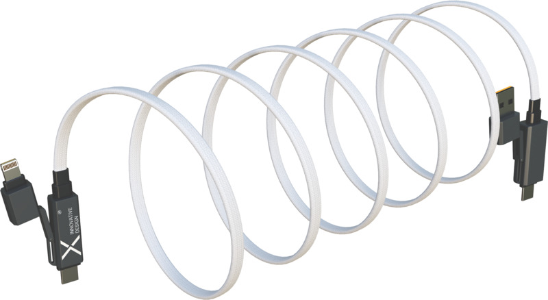 - Features a 1-metre flat cable with Type-C and Lightning connectors, including dual USB-A and USB-C input for broad device compatibility.