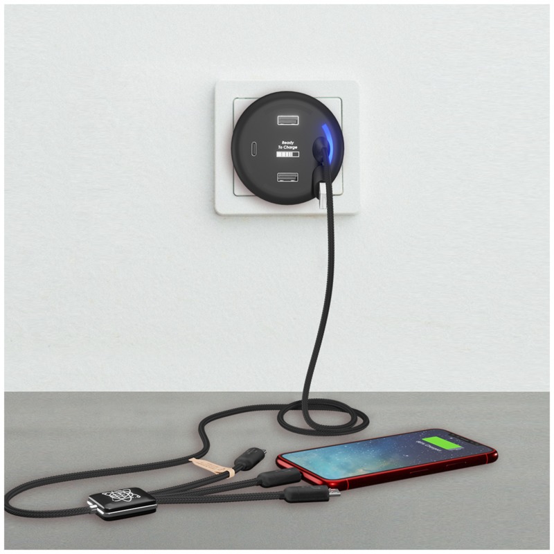 Charge up to four devices simultaneously with the SCX.design H11 smart home charger. It features 4.2A USB and USB-C ports, plus a light-up logo. This charger makes an excellent general promotional item for corporate gifting.