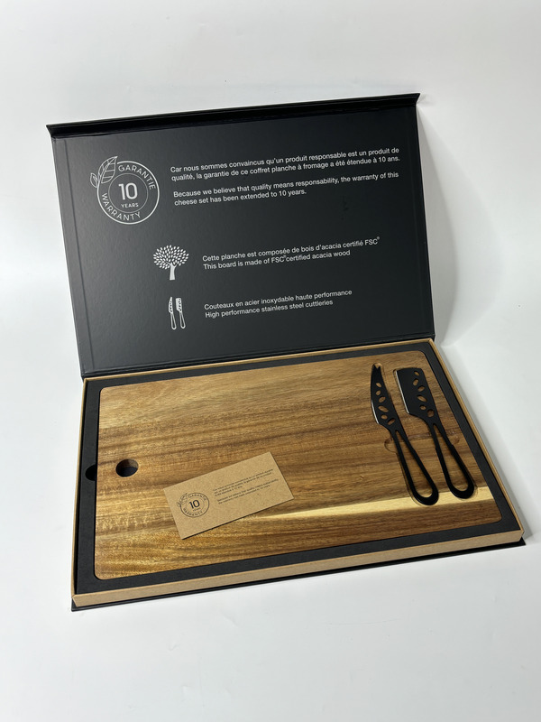 - Includes an acacia wood cheese board, measuring 40 x 25 x 1.5 cm.