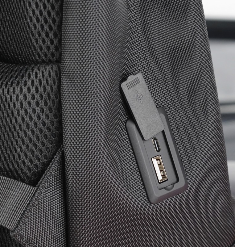 - Features discreet USB and USB-C plugs, allowing the bag to become a charging station when connected to an optional power bank.