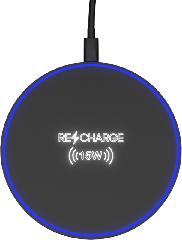 • This extra slim 15W wireless charging pad measures 10 x 7.2 cm and is made from ABS plastic with a soft touch finish.