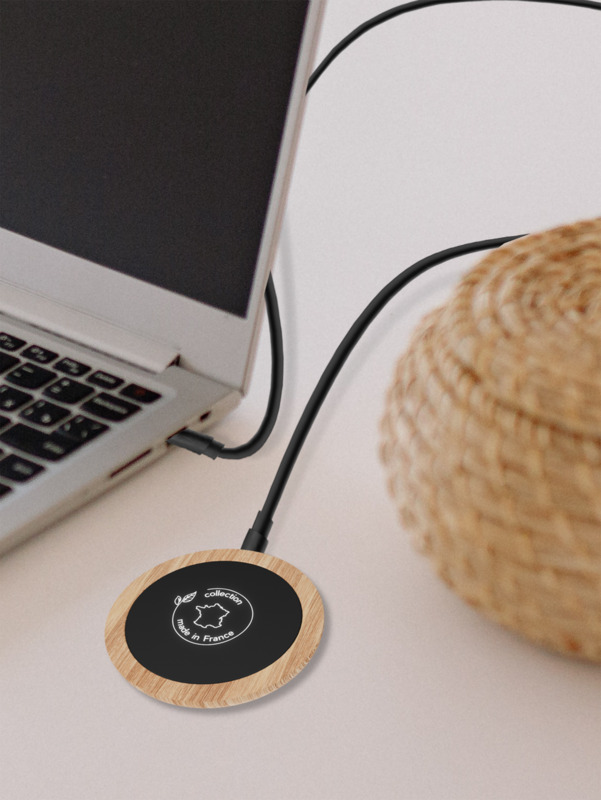 Offer clients and staff a practical SCX.design W24 10W wireless charging station. This Qi-compatible device provides 10W wireless power and features French oak wood construction. Your brand gains visibility with a custom light-up logo.