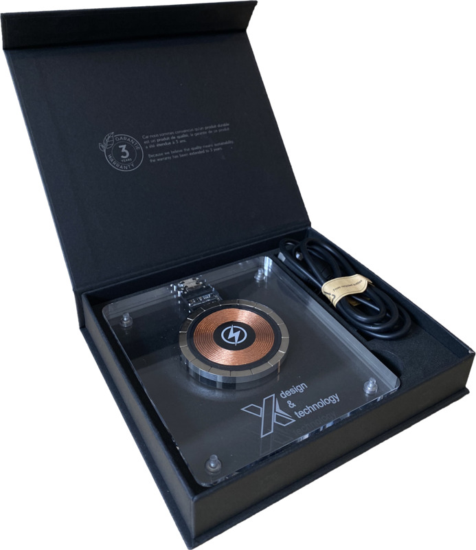 • Includes an rPET charging cable and a black gift box (14.8 x 13.3 x 2.6 cm) with a magnetic closure.