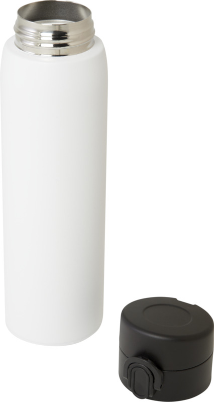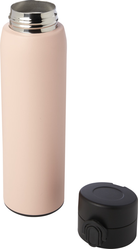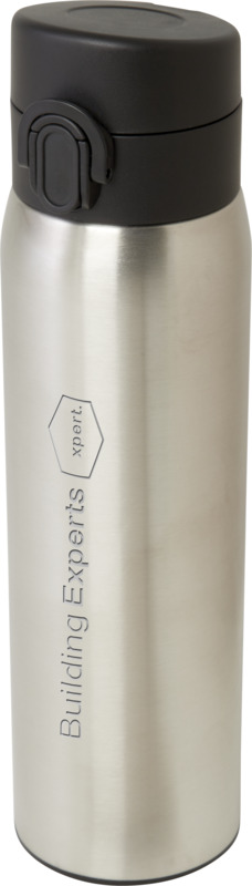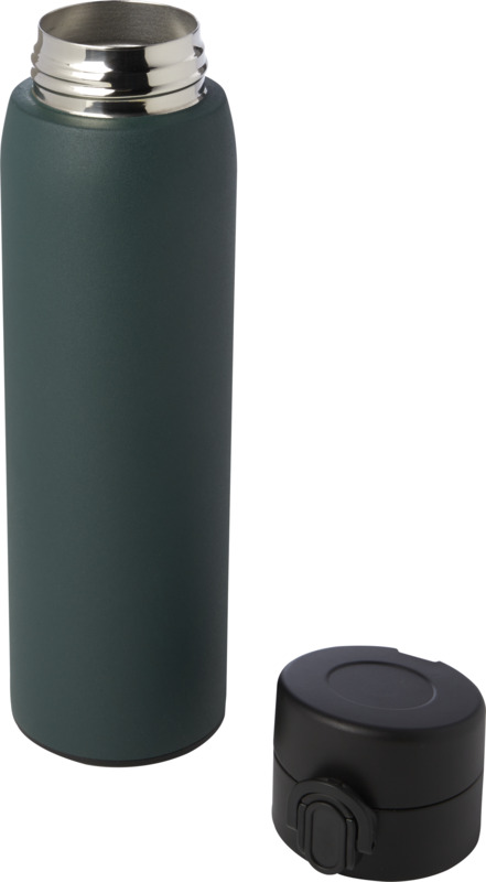 This Sika 450 ml insulated flask keeps drinks hot or cold for hours, offering a sustainable choice for your brand. It is made from RCS certified recycled stainless steel and features a leakproof design with an easy button opening. A good item for promotional campaigns.