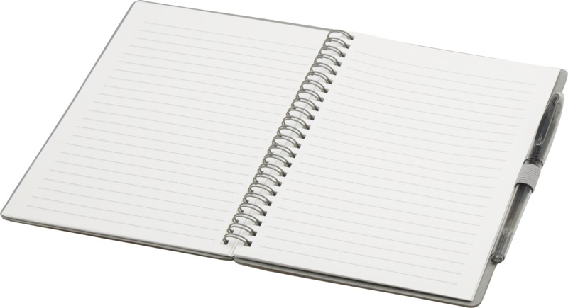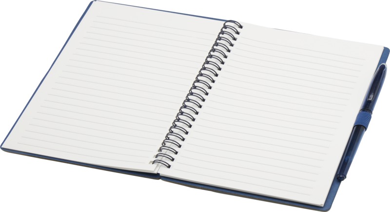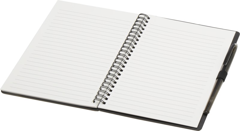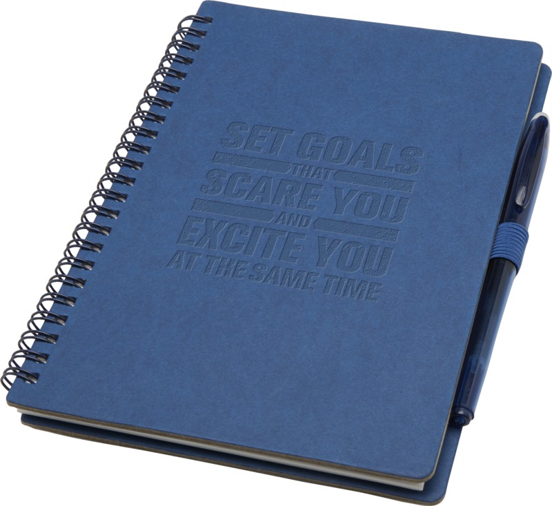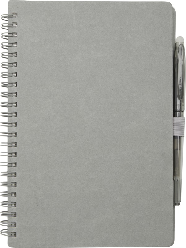 • The A5 notebook features a hard cardboard cover with rounded corners and 32 sheets of 120 g/m² lined stone paper. Stone paper is 100% tree-free, using less energy during production.