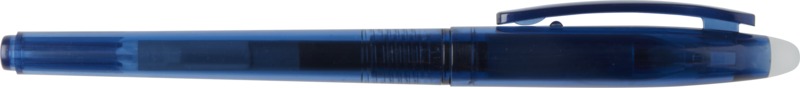 • The accompanying pen is made from recycled plastic, with a transparent barrel, a white eraser on top, and a solid coloured grip.